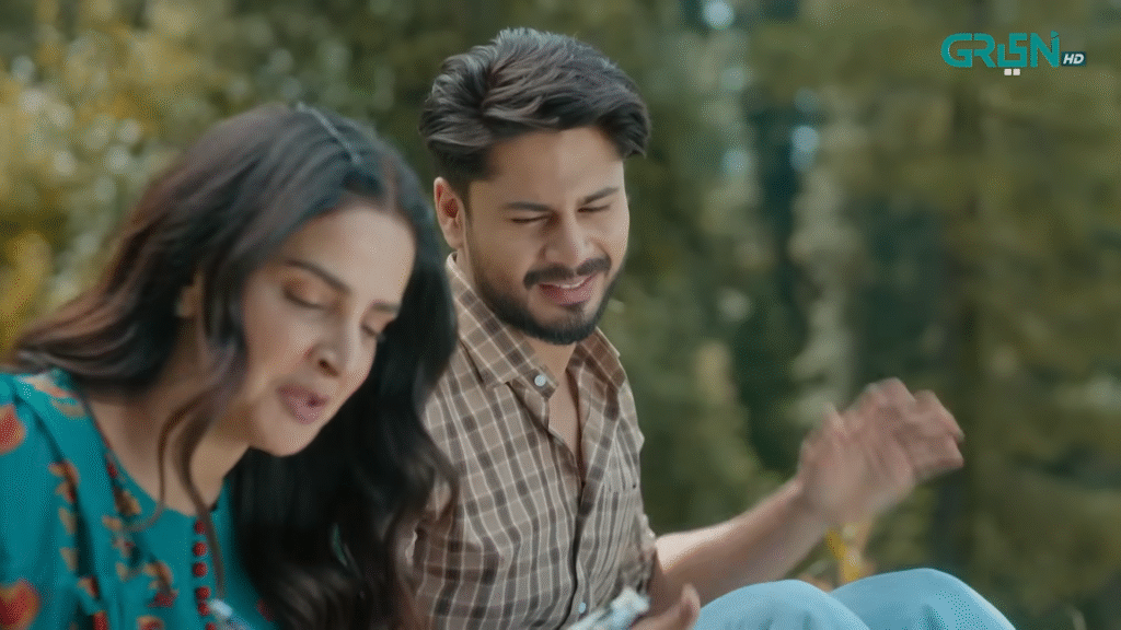 Produced by Multiverse Entertainment and directed by Khizer Idrees, the story begins with a wide aerial shot of a beautifully decorated and lighted building where an award ceremony is taking place. As the story is shot in Muree and Islamabad, we see a refreshing feeling regarding locations, both indoor and outdoor. The beautiful mountains, wide patches covered with trees and greenery, winding paths through the streets, make it a different-looking story. The director, Khizer, has made Saba Qamar perform another assertive character for which he deserves applause.