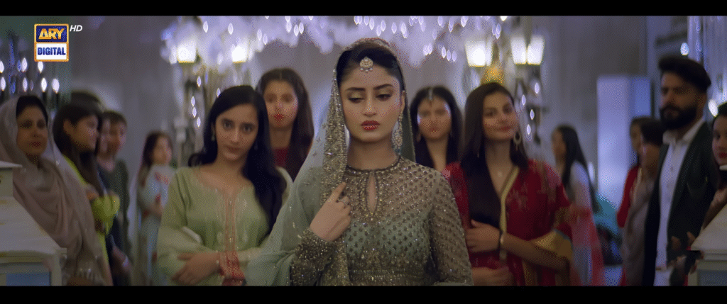Since the drama is filmed in Lahore, unlike Karachi, we notice new locations and experience a sense of freshness with the settings. Aerial shots showcase the historic Badshahi Masjid, Chowk Chowburji with the orange line train passing nearby, and the Metro Bus Terminal, along with scenes at the BNU campus, Anarkali, and Mazar Peer Makki. The wedding venue is also very spacious and beautifully decorated.